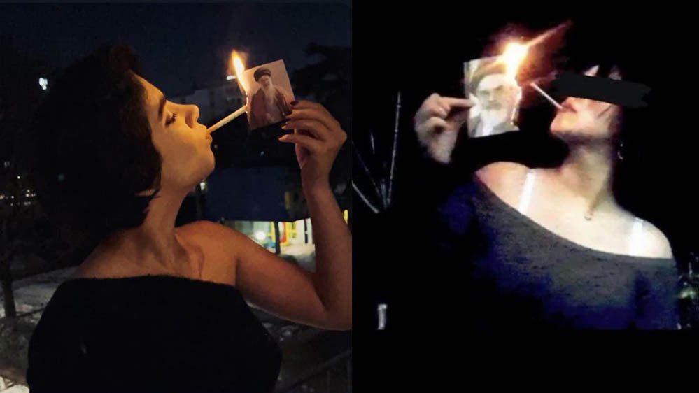 खामेनेई की तस्वीर पर सिगरेट जलाती महिलाएं