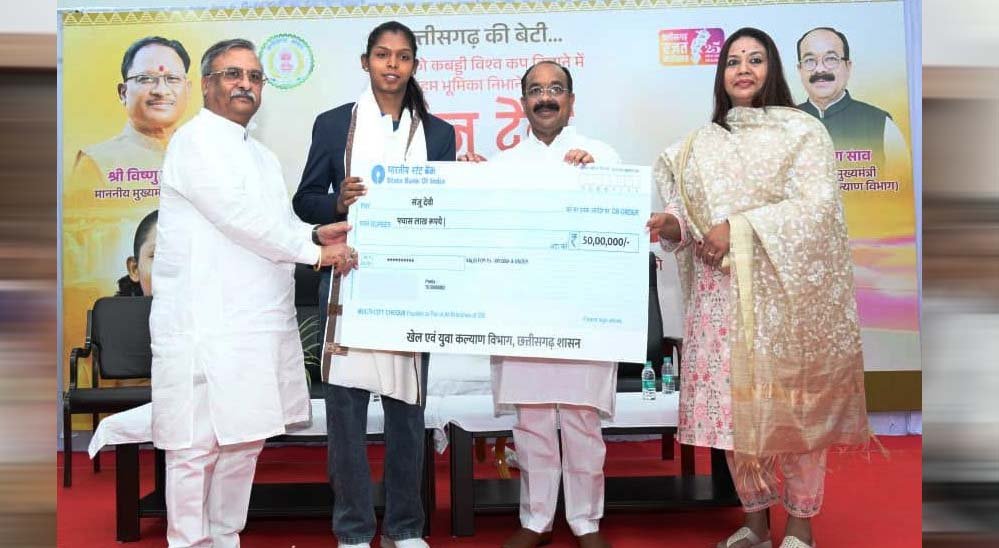 भारत को कबड्डी विश्वकप और एशियन चैंपियनशिप दिलाने में अहम भूमिका निभाने वाली संजू देवी को राज्य शासन के खेल एवं युवा कल्याण विभाग द्वारा 50 लाख रुपए की प्रोत्साहन राशि प्रदान की गई है। छत्तीसगढ़ में पहली बार किसी खिलाड़ी को इतनी बड़ी प्रोत्साहन राशि दी गई है। उप मुख्यमंत्री तथा खेल एवं युवा कल्याण मंत्री अरुण साव ने आज नवा रायपुर स्थित अपने निवास कार्यालय में आयोजित सम्मान समारोह में उन्हें यह राशि सौंपी। साव ने इस दौरान बिलासपुर के चिंगराजपारा कबड्डी क्लब को कबड्डी मैट भी प्रदान किया।
