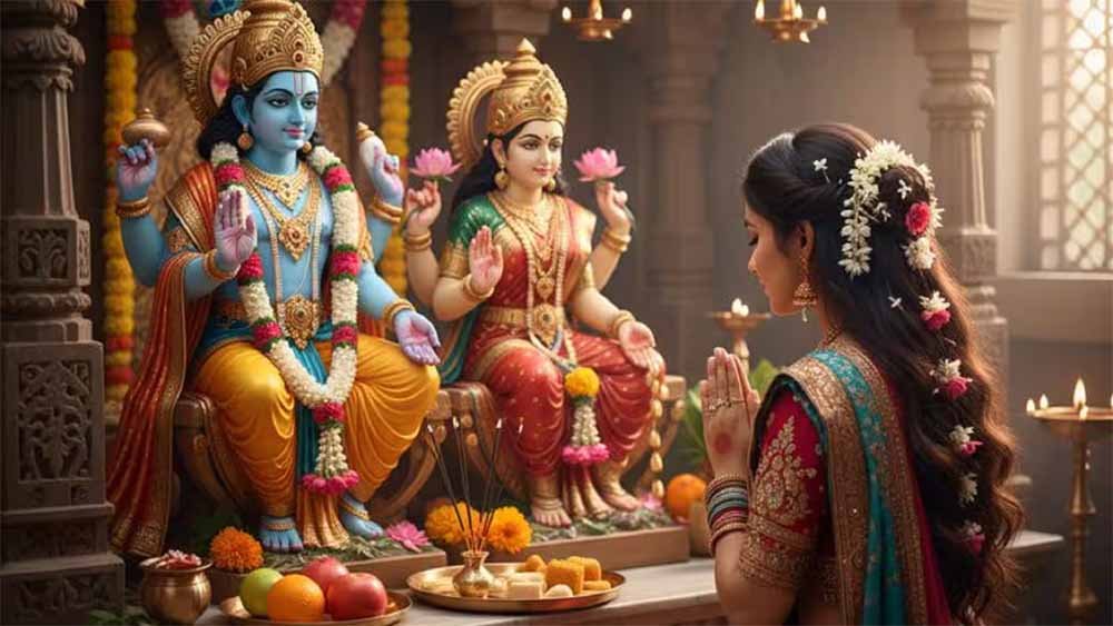 - भगवान विष्णु और मां लक्ष्मी की मूर्ति को स्थापित करें।