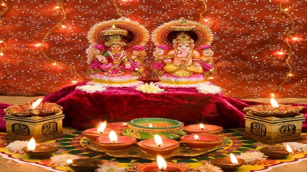 दिवाली पर पूर्व दिशा या ईशान कोण में एक चौकी रखें. चौकी पर लाल या गुलाबी वस्त्र बिछाएं. पहले गणेश जी की मूर्ति रखें. फिर उनके दाहिने ओर लक्ष्मी जी को रखें. आसन पर बैठें और अपने चारों ओर जल छिड़क लें. इसके बाद संकल्प लेकर पूजा आरम्भ करें. एक मुखी घी का दीपक जलाएं. फिर मां लक्ष्मी और भगवान गणेश को फूल और मिठाइयां अर्पित करें.